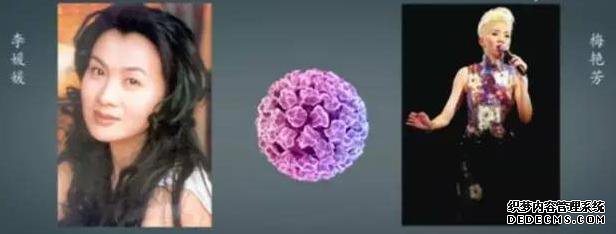 图片中这两位美丽的女子,大家都认识,一位是李媛媛,一位是梅艳芳,香港著名的艺人,她们都是因为同一种疾病——宫颈癌,而英年早逝的。这两位女性中间的那个,看着还很漂亮的,美丽的一个球体,其实它很可恶,叫人乳头瘤病毒。如果女性长期地存在生殖道的感染,就可能发生宫颈癌的致病。